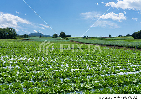 長野 高原の夏景色 レタス畑と八ヶ岳