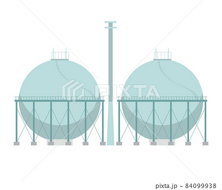 シンプルなガスタンク ガスホルダー ガス貯蔵庫のイラスト エネルギー 白背景