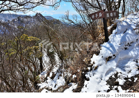 愛鷹山塊の越前岳 アセビ咲く高場所尾根分岐より望む呼子岳