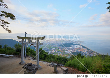 【香川県】晴天の高屋神社(天空の鳥居)観音寺市街地と瀬戸内海の眺め