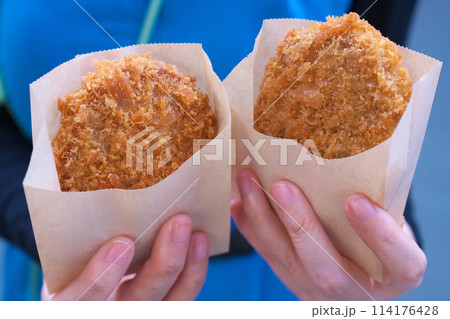 飛騨高山の古い町並 三町伝統的建造物群保存地区の飛騨牛コロッケ
