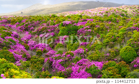 阿蘇山頂周辺 阿蘇山 中岳火口周辺 ミヤマキリシマの花風景(阿蘇山中岳・阿蘇火口周辺)