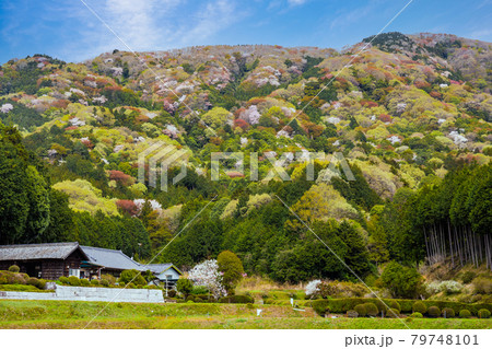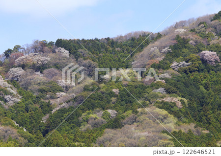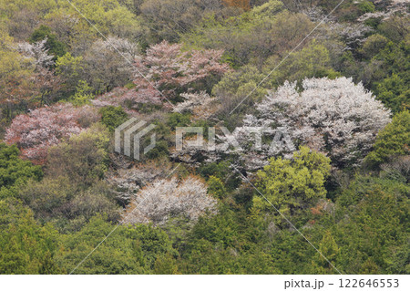 里山の春 茨城県桜川市高峯に咲く満開の山桜の風景