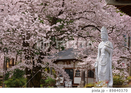 山梨県 満開の桜と観音様 4月