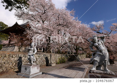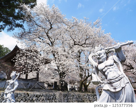 山梨県 満開の桜と仁王像 4月