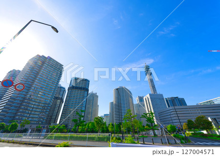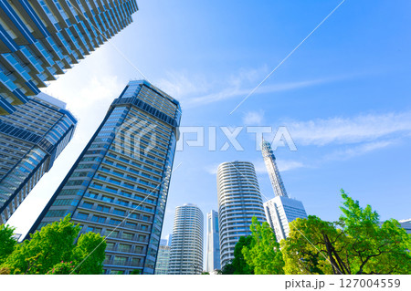 【神奈川県】5月・高層ビルやタワーマンションがそびえる新高島駅周辺の都市風景
