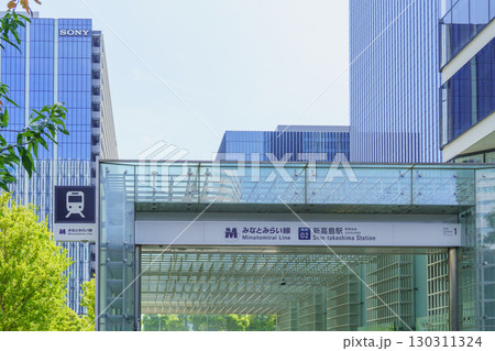 【神奈川県】5月・高層ビルやタワーマンションがそびえる新高島駅の通勤風景