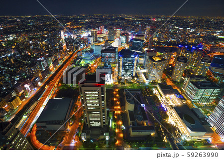 日本の横浜都市景観 富士山や横浜駅などを望む