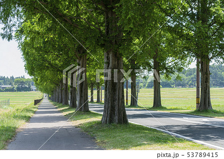滋賀県高島市マキノ町の夏の緑が美しいメタセコイアの並木道