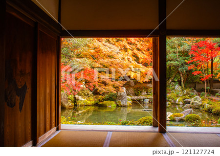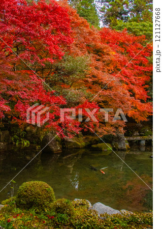 【京都風景】秋の池を彩る静けさの中の紅葉