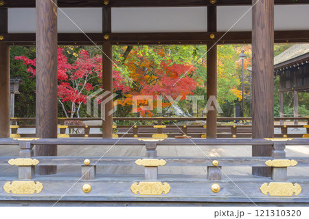 秋の京都 上賀茂神社 橋殿(舞殿)から見える紅葉