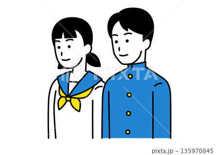 まっすぐ前を向いている学生の男女