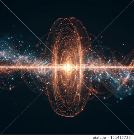 量子構造や原子軌道をイメージした光の抽象背景 未来的なテクノロジーデザイン素材