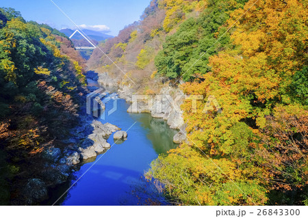 高津戸峡 高津戸渓谷 高津戸橋からの眺め 紅葉はじめ 秋の風景