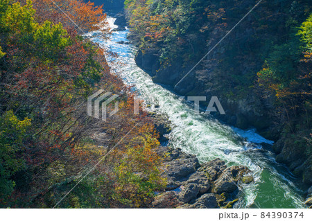 はねたき橋からの眺め 高津戸峡 高津戸渓谷 紅葉はじめ 秋の風景