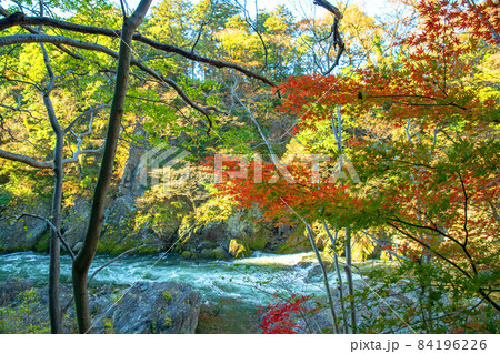 高津戸峡 高津戸渓谷 紅葉はじめ 秋の風景