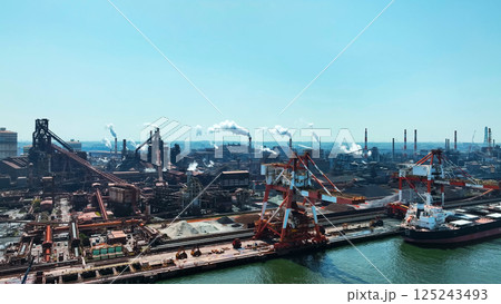 湾岸の工業地帯の風景 真俯瞰空撮
