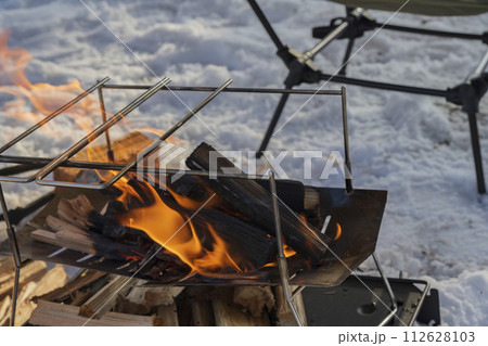 冬キャンプ 雪 焚き火イメージ素材