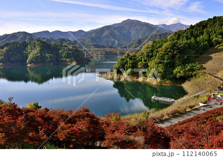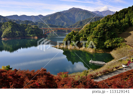 秋の宮ヶ瀬湖 紅葉の丹沢山地