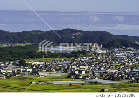 雨上がりの香長平野と四国山脈(陣山あたりの秋空と田園風景)