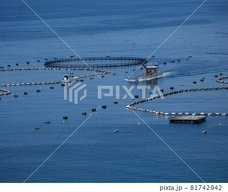 マグロの養殖場へ向かう漁船