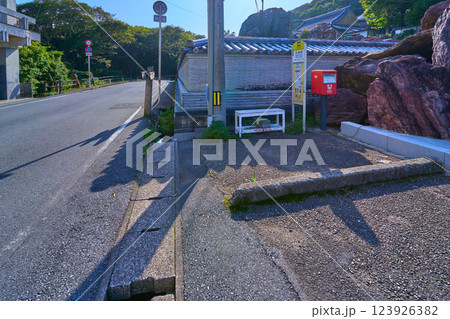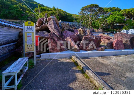 春の高知県土佐清水市足摺岬のバス停(足摺岬)