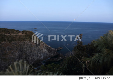 足摺岬灯台より天狗の鼻と幻想的な赤い満月