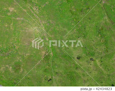 青々とした草原〜ドローンで上空から真下を撮影(北海道斜里郡斜里町)