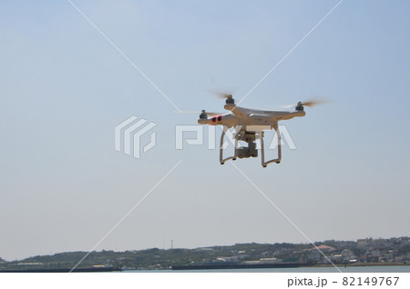 飛翔するドローン「ファントム3 スタンダード」(藪地島/沖縄県うるま市)