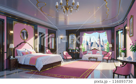 「ゴシック調ピンク色の寝室」