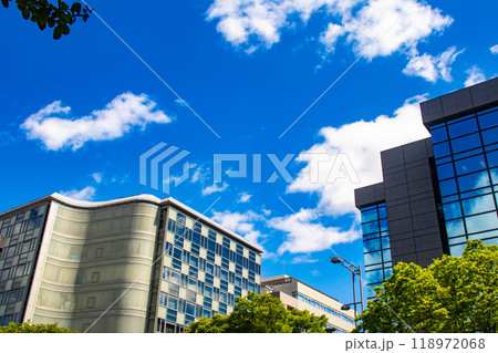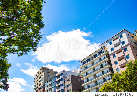 緑がある街の高層ビル
