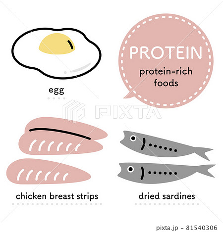 たんぱく質を多く含む食品 イラストセット(英語ver.)