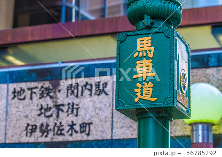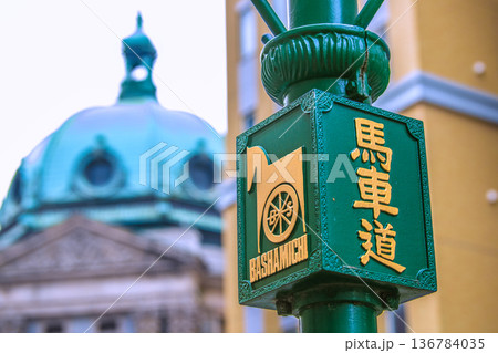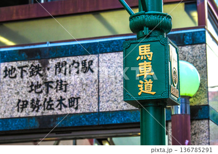 日本の横浜都市景観 横浜・馬車道。奥は地下鉄 関内駅等出入口