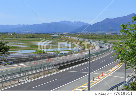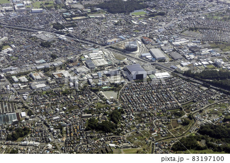 東名高速道路の綾瀬スマートインターチェンジ付近を空撮