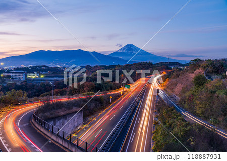 【静岡県】伊豆縦貫道三島塚原インターチェンジから夕暮れの富士山