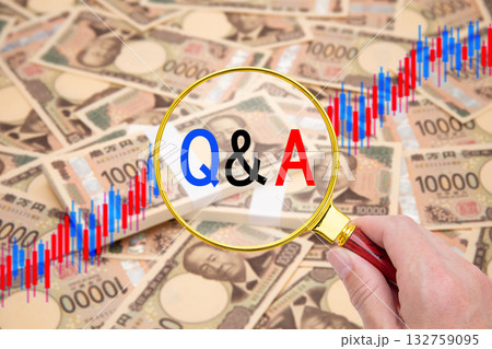 Q&A(大量の日本円を背景にしたローソク足チャートにQ&A)