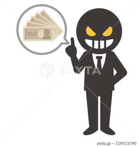 怪しい高額バイトの募集イメージのスマホと悪人のイラスト素材