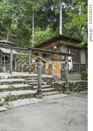 鳥居の前でポーズをする着物姿の女性|日本庭園・和風・観光イメージ