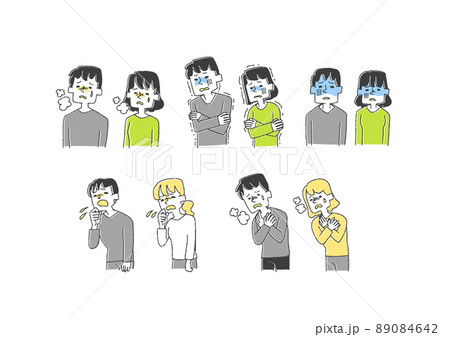いろいろな体調不良の人物のセット コミカルな手書きの人物 ベクター、線画にカラー