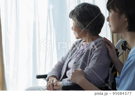 泣いている入院中のうつ病患者に寄り添い傾聴する精神科看護師