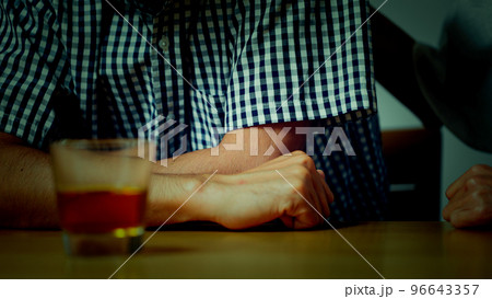 家でうなだれるミドル女性と彼を慰めるミドル男性