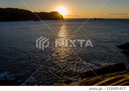 世界遺産「鬼ヶ城」(三重県・熊野市)の朝焼け