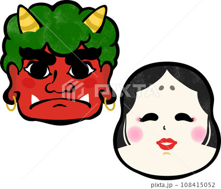 【節分素材】和風の筆描きの赤鬼とお多福の顔