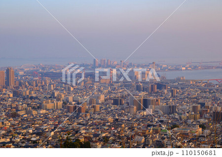 神戸灘の展望台から神戸市街地をのぞむ。六甲山への登山道の途中、五鬼城展望公園より撮影