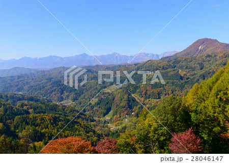 大望峠から望む紅葉の山村風景 長野市鬼無里