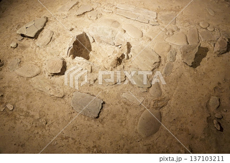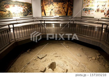 道の駅に併設展示されている石器時代の住居 囲炉裏跡