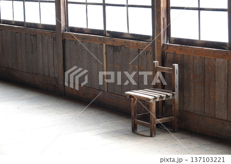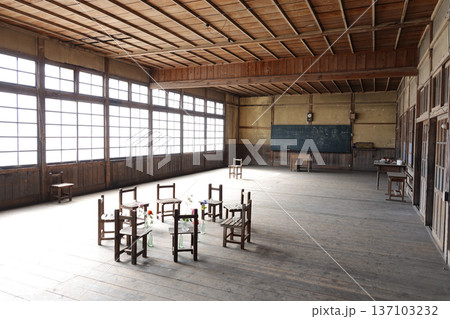 道の駅に併設展示されているレトロな旧小学校の木造校舎内部