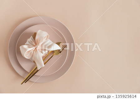 Rose Flower on Elegant Table Setting. Romantic Valentines or Mothers Day Flatlay in Soft Pink Tones