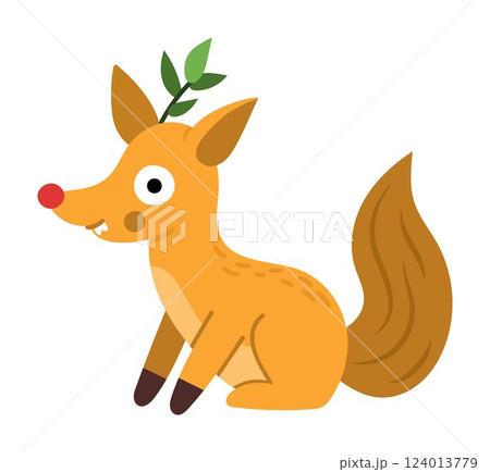 Vector fox icon. Magic creature clipart. Cute fairytale character. Woodland fantasy animal with twig on head. Forest fairy tale illustration isolated on white background