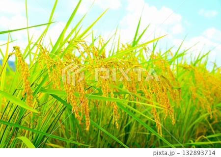 新潟県小千谷市 実りを迎えた黄金の田んぼと青空